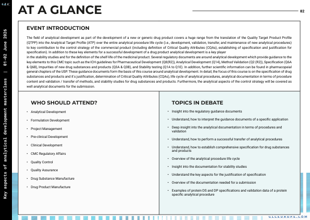 #masterclass #glceurope #pharmaonlinetraining #globalleadingconferences #keyaspects #analyticaldevelopment