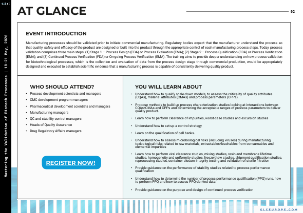 #masterclass #glceurope #pharmaonlinetraining #globalleadingconferences #EUprocessvalidation #biotechnologicalproducts